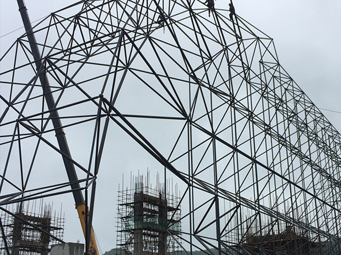 4.满堂脚手架是最有利的 螺栓球网架境外施工平台,它在确保境外施工安全的同时,又能承当部分网架重量,有效防止网格下沉变形,以及调整网架安装过程中的误差积累和支座与预埋件之间的偏离。